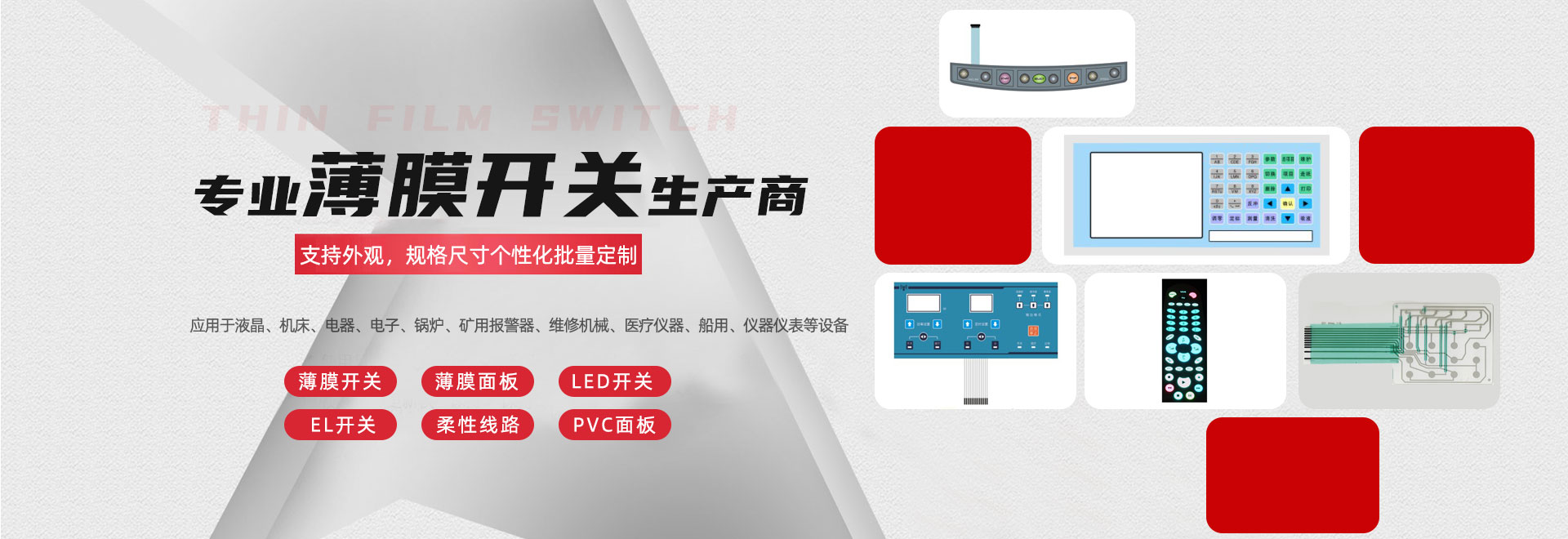 專(zhuān)業(yè)生產(chǎn)各種電子薄膜開(kāi)關(guān);LED燈開(kāi)關(guān)、PET/PC/PVC面板等電子配件。廣泛應(yīng)用于多個(gè)行業(yè)。